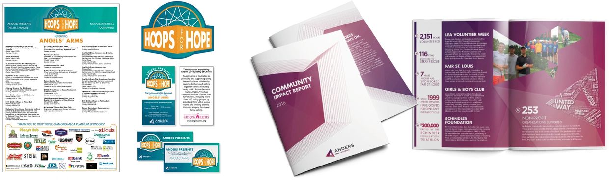 Anders also contracted Apple Core Creative to design a new look for its flagship fundraiser - Hoops For Hope. The NCAA basketball pool draws more than 700 nationwide participants including clients, colleagues and referral sources. The logomark marries the Anders iconic angular background and tertiary colors with a bright new contrast and modern appeal. The new look is complete with a suite of social media graphics, handouts and flyers to match.