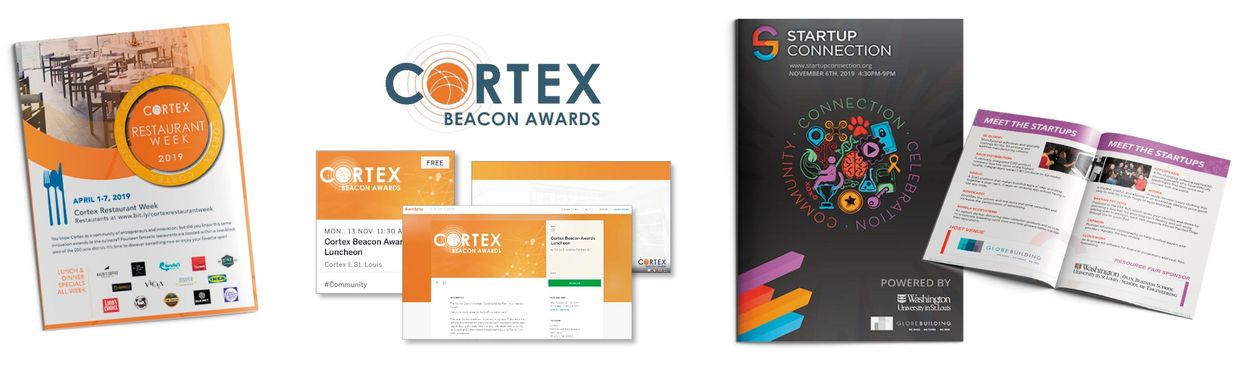 Cortex Innovation Community is a vibrant, 200-acre innovation hub and technology district in St. Louis, Missouri. Apple Core Creative worked with the nationally renowned organization to design and produce marketing materials including flyers, business cards, event logos and materials, maps and a unique variety of other graphics.