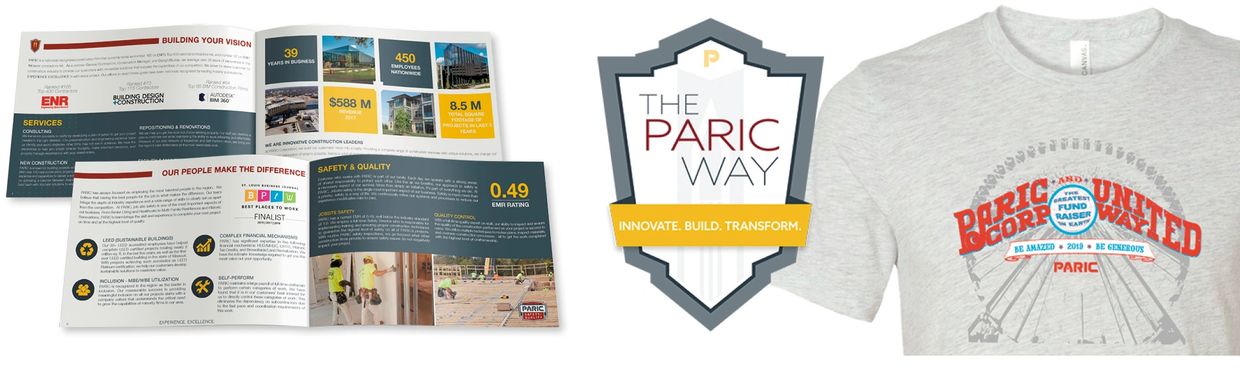 PARIC Corporation is among the most well-known general contractors in St. Louis and is ranked among the top construction companies in the nation. We were fist hired to design a company brochure and an employee anniversary card. With a simple refolding, the custom card served as both an envelope and a holder to display a personalized note. In addition to print and digital graphics, Apple Core Creative also worked with Paric on its national marketing and communications strategies.